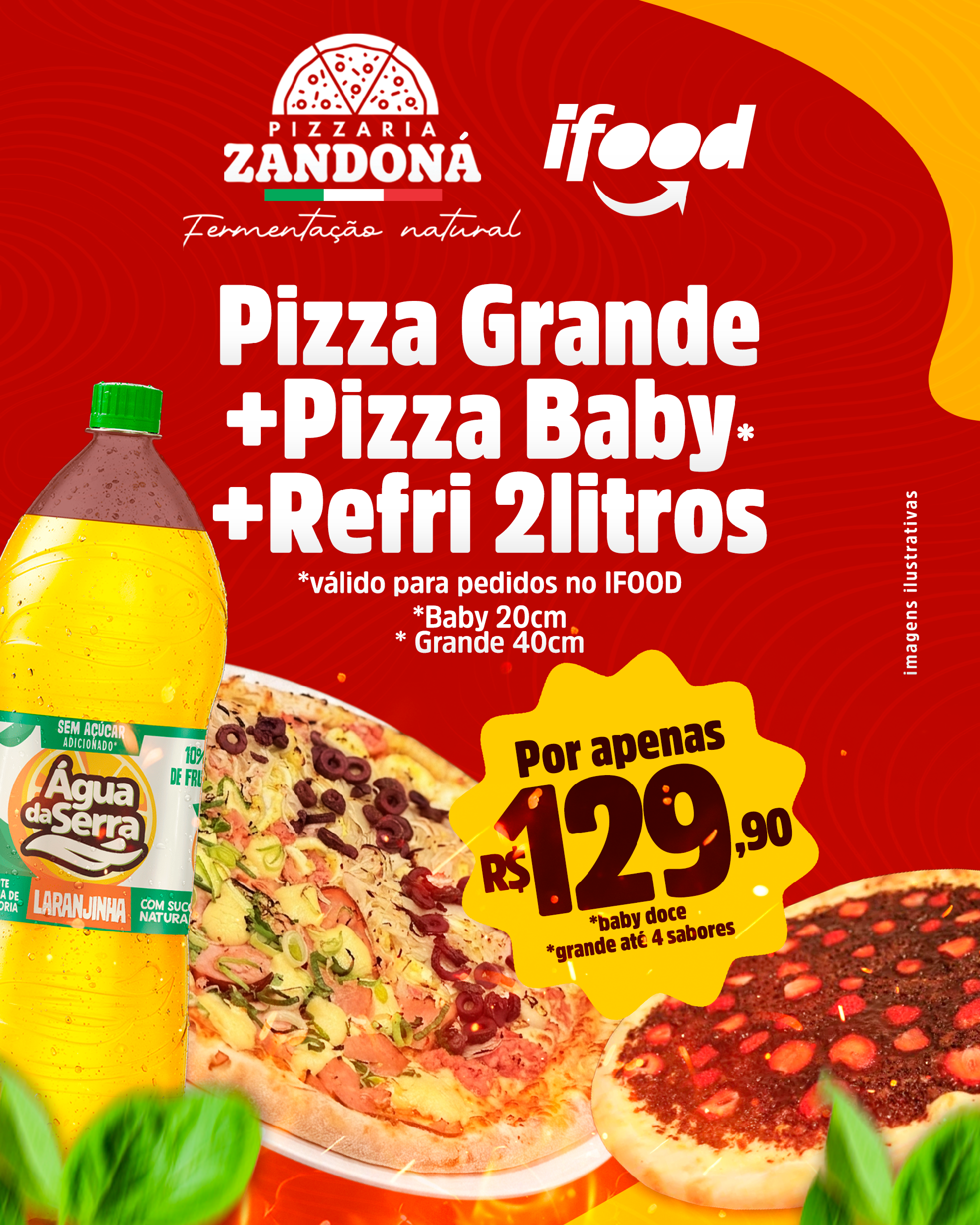 40cm, 16 Pedaços, 4 Sabores, Broto Doce, Refrigerante 2L